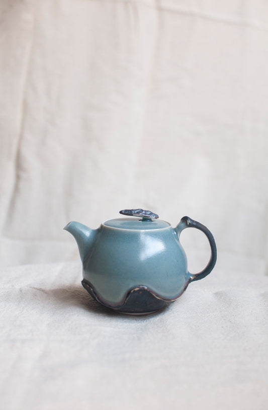 Matte Sky Blue on White Porcelain Mountains Teapot